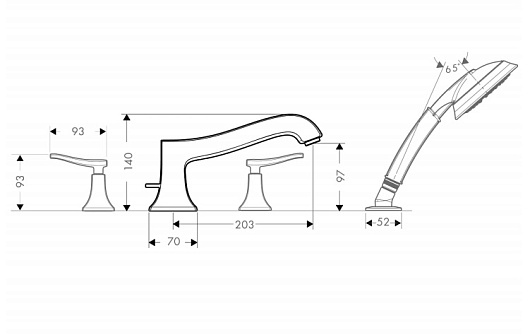 Hansgrohe Смеситель Metris classic 31314000 на борт ванны