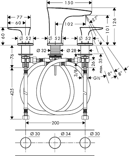 - монтаж на три отверстия