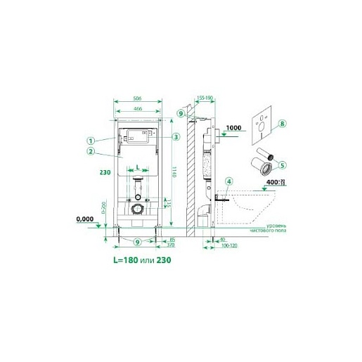 - Инсталляция рамная Neofix NEO0000I32 для подвесного унитаза, 1180x506;
