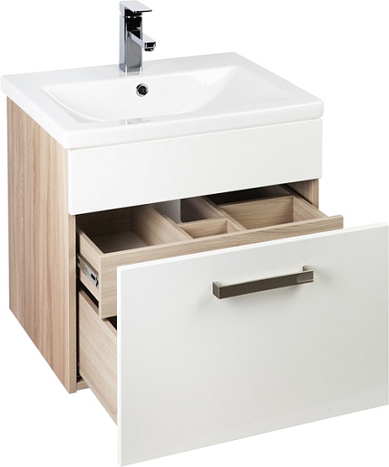 Тумба под раковину Mirro 60 подвесная белая/ясень шимо