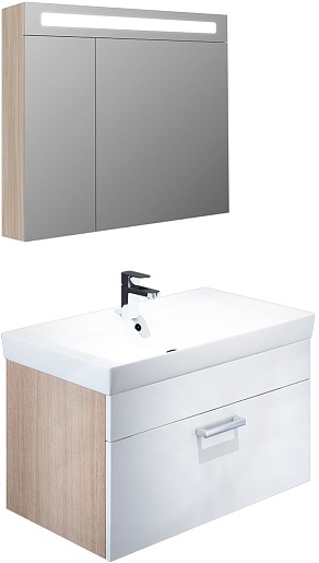 Тумба под раковину Mirro 80 подвесная белая/ясень шимо