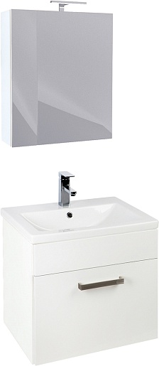 Комплектация: тумба под раковину, раковина, зеркальный шкаф, крепеж.