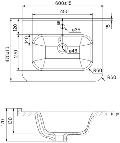 - 1 отверстие под смеситель.