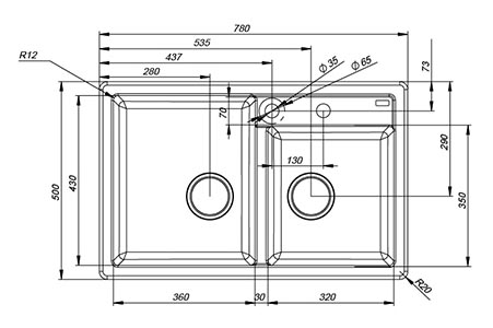 - материал: Granucryl (состоит из 80% натуральной гранитной крошки и 20% акриловой смолы)