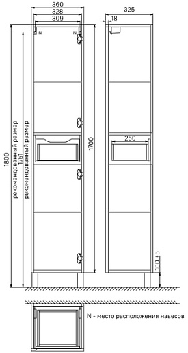 - 1 дверца, 1 внутренний ящик.