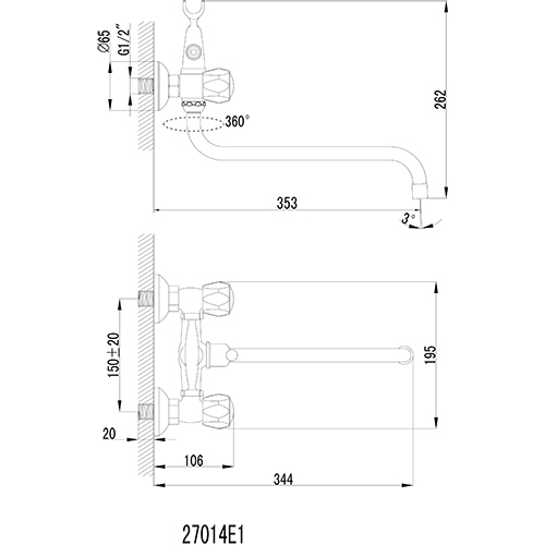 Смеситель "Classic 27014Е1К" для ванны: