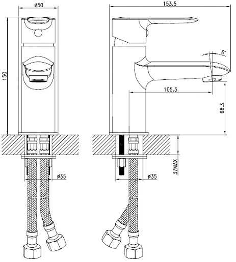 - Комплектация: гибкая подводка, крепеж