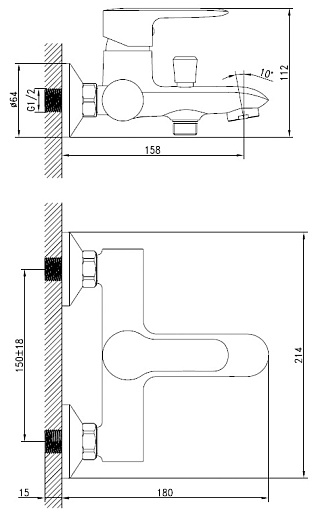 - Настенный монтаж на два отверстия