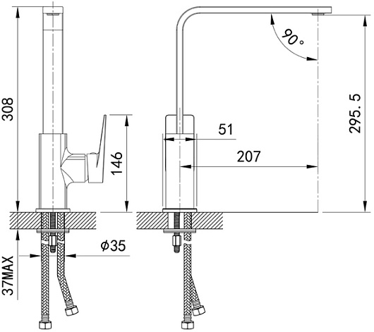 Комплектация: смеситель, гибкая подводка.