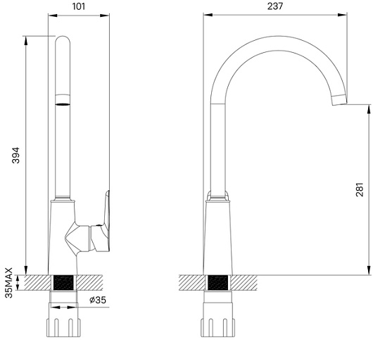 • Поворотный излив.
