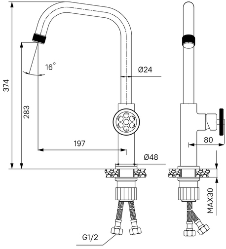 Комплектация: смеситель, гибкая подводка.