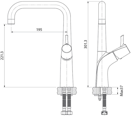 Комплектация: смеситель, гибкая подводка.