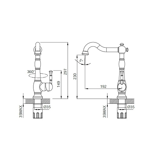 - поворотный излив 360°