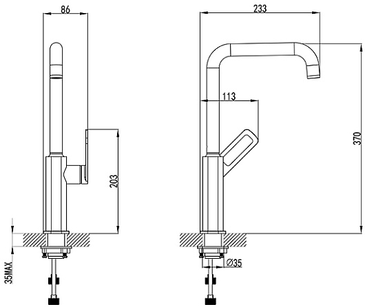 Высота излива, мм: