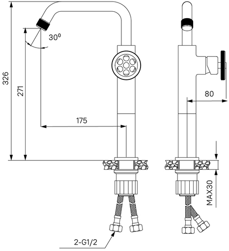Комплектация: смеситель, гибкая подводка.