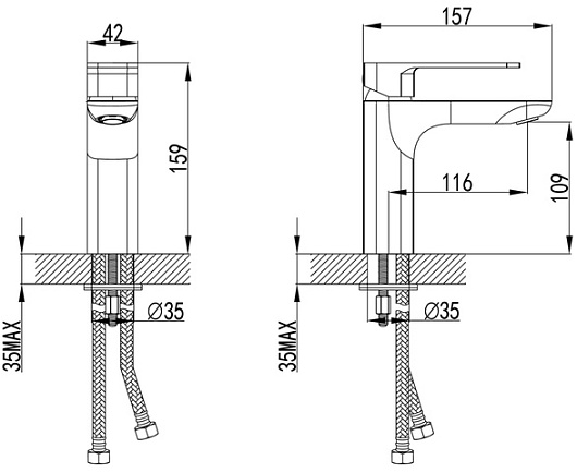 Комплектация: смеситель, гибкая подводка.