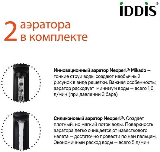 - 2 аэратора: силиконовый Neoperl M22 и Neoperl Mikado M24.