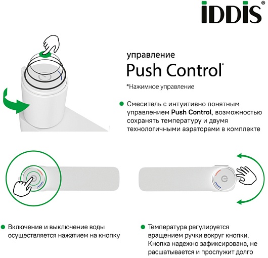 Смеситель для раковины Iddis Slide SLIWTBTi01 запоминает комфортную температуру воды: достаточно просто оставить ручку в выбранном положении.