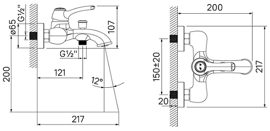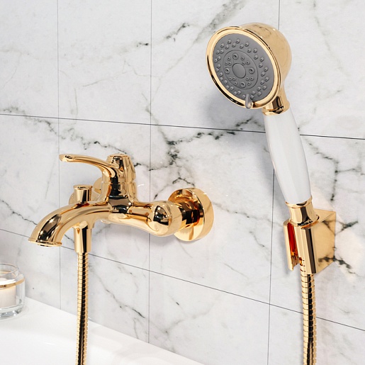 Комплектация: смеситель, эксцентрик (2 шт.), душевая лейка, шланг.