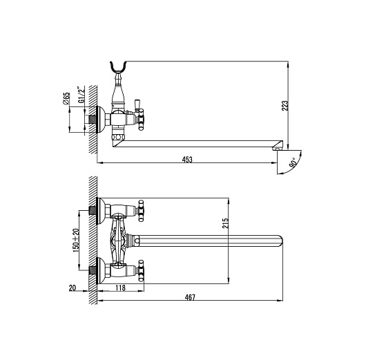 Длина излива, мм: