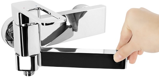 - Дивертор встроен в излив, переключение на душ осуществляется поворотом излива.