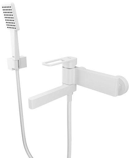 Комплектация: смеситель, эксцентрик (2 шт.), душевая лейка, шланг, держатель лейки.