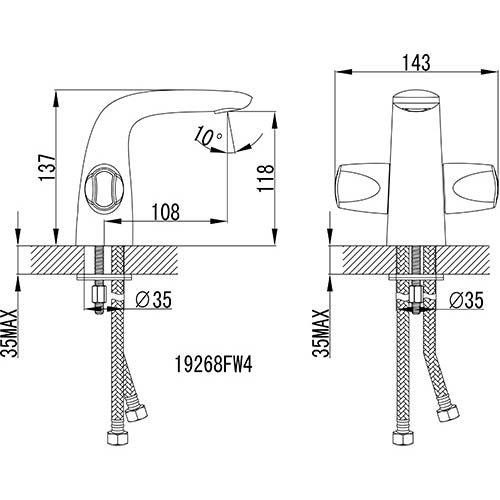 - установочный диаметр отверстия для монтажа - 35 мм