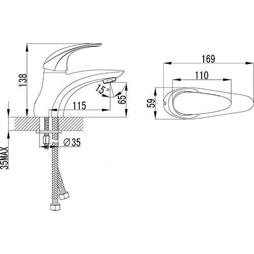 - фиксированный излив 115 мм