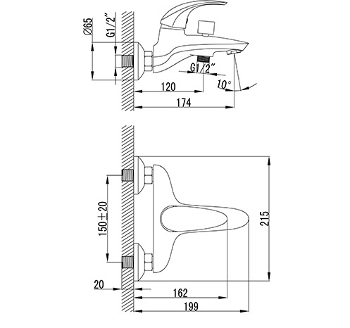 - фиксированный излив 174 мм