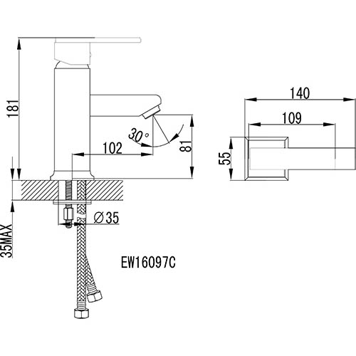 - фиксированный излив 102 мм