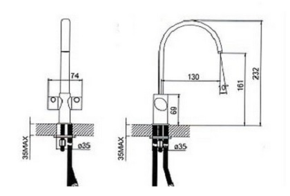 - установочный диаметр отверстия для монтажа - 35 мм