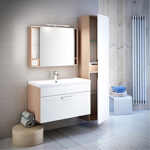 Тумба под раковину Mirro 80 подвесная белая/ясень шимо