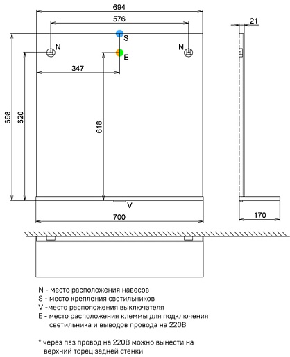 - Размер (ШxВxГ): 70x69.8x17 см.