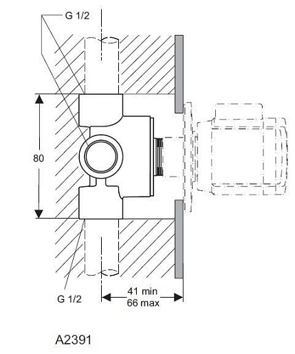 Встраиваемый 4-х ходовой переключатель 1/2" (1 вход, 3 выхода)..