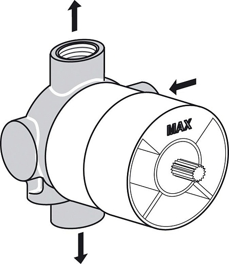 Встраиваемый 3-х ходовой переключатель 1/2", 1 вход, 2 выхода.