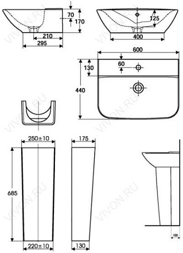 - возможна установка с пьедесталом, приобретается отдельно
