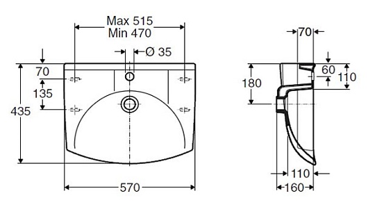 - одно готовое отверстие под смеситель по центру