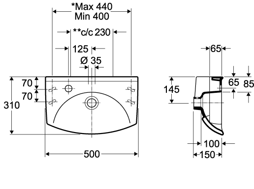 - одно готовое отверстие под смеситель слева