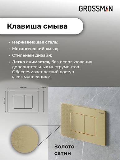 Grossman Инсталляция для подвесного унитаза Classic 97.04.32M с клавишей смыва золото сатинированное