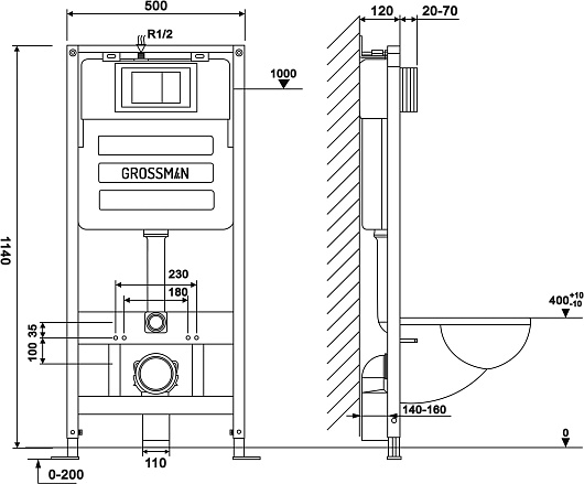 Инсталляция для подвесных унитазов Grossman Galaxy 97.01.110 с клавишей смыва.