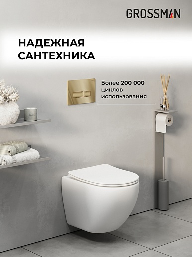 Grossman Инсталляция для подвесного унитаза Pragma 97.03.300 с клавишей смыва золото глянцевое