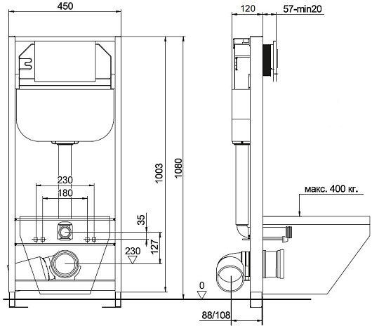 Инсталляция для подвесных унитазов Milacio Standart MCU.200.