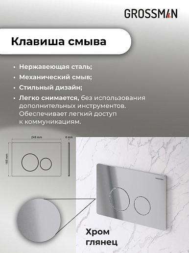 Grossman Инсталляция для подвесного унитаза Style 97.05.10M с клавишей смыва хром глянцевый
