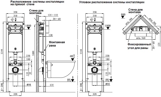 - Возможна установка в угол.