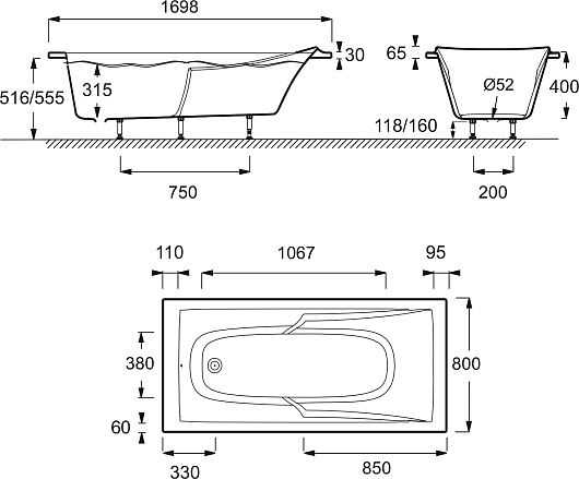 Комплектация: ванна, ножки.