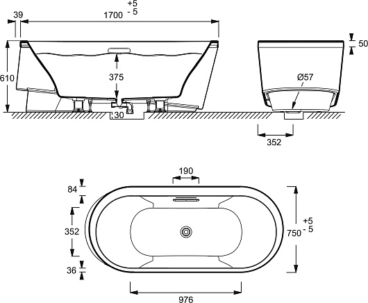 Комплектация: ванна, автоматический слив, панель, поддерживающий профиль, комплект ножек для монтажа, сифон, комплект подключения.