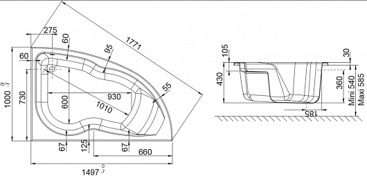 Jacob Delafon Акриловая ванна MICROMEGA DUO 150x100 R