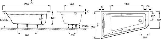 Jacob Delafon Акриловая ванна Odeon Up 160x90 L E5BB2260-00 с гидромассажем
