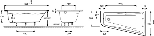 Jacob Delafon Акриловая ванна Odeon Up 160x90 R E5BC2250-00 с гидромассажем