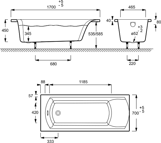 Комплектация: ванна, ножки.